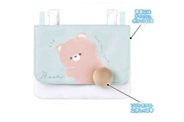クラ131047 【送料無料】【オリジナル】ショルダー付きワイドポシェットポケット【くま】【ふりふりテイル】【ベア】【動物】【アニマル】【ポーチ】【ケース】【小物入れ】【かばん】【バッグ】【斜め掛け】【ショルダー】【収納】【子供】【キッズ】【雑貨】【グッ