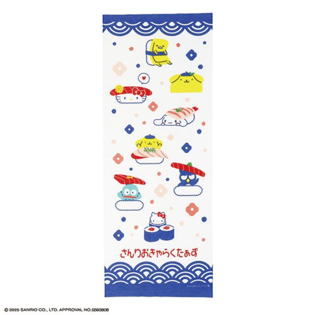 マル3825019300 【日本製】【サンリオキャラクターズ】手ぬぐい【みんなとお寿司】【ハローキティ】【タオル】【たおる】【お風呂】【海】【プール】【雑貨】【グッズ】【かわいい】