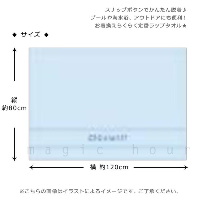 ママにも大人気!シンプルデザインがお洒落でかっこいいラップタオル♪ 大人も使いやすいロゴ刺繍デザインで使いやすい! かわいいアイテムと一緒ならもっとプールがたのしくなりそう♪ かさばらないベーシックな丈でお着がえもらくらく☆ 肌ざわりが良く、厚すぎない吸水性に優れた綿を使用しているので使い心地も◎ 海やプールで大活躍! |