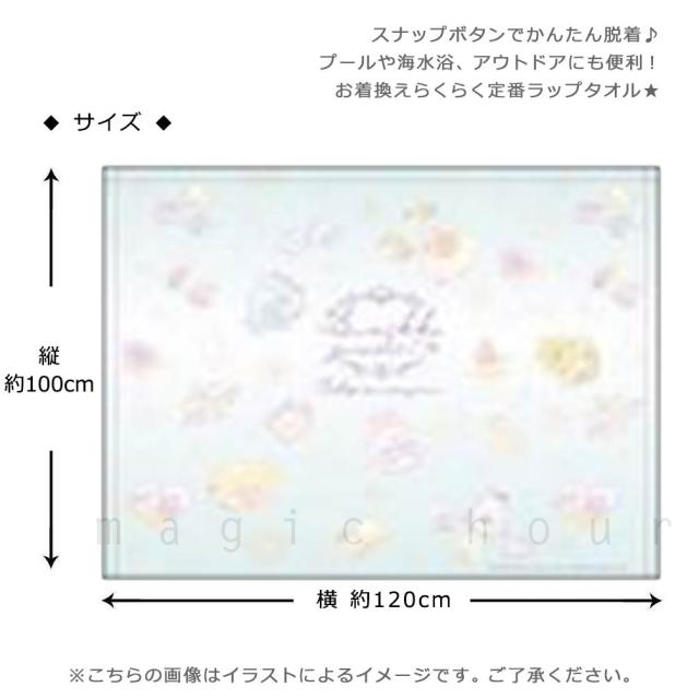 ママにも大人気!すみっコぐらしのかわいいラップタオル♪ みんなで願いがかなうようにおまじない♪テーマ「うさぎのふしぎなおまじない」のお着換えタオル! かわいいキャラクターと一緒ならもっとプールがたのしくなりそう♪ 女の子や大人でも安心の丈でお着がえもらくらく☆ 肌ざわりが良く、厚すぎない吸水性に優れた綿を使用しているので使い心地も◎ 海やプールで大活躍! |