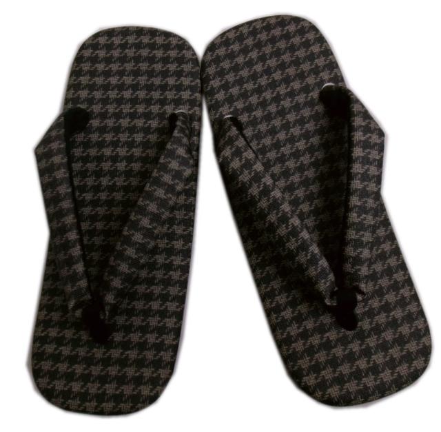 雪駄 メンズ 男性 ライト底 「信貴」 墨黒グレー千鳥格子 フリー 26cm 日本製 浴衣 着物 男物 紳士用 きもの ゆかた せった セッタ 総柄 和柄