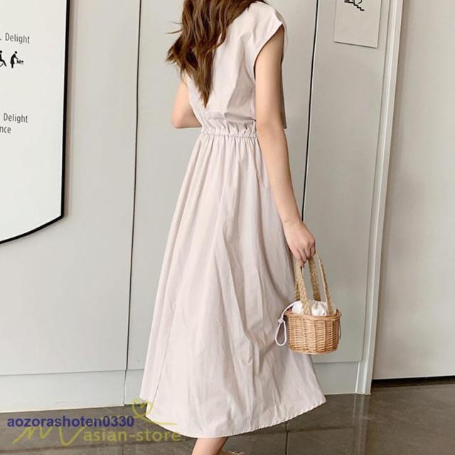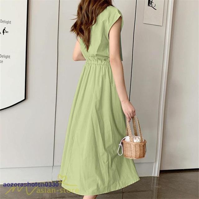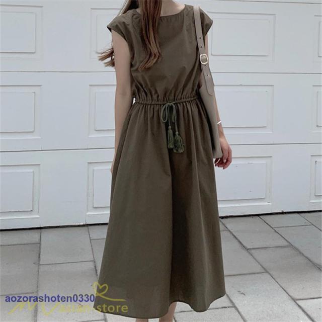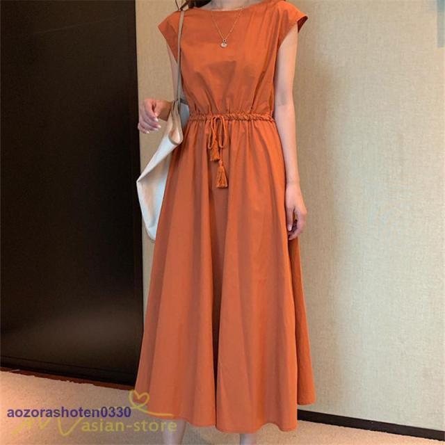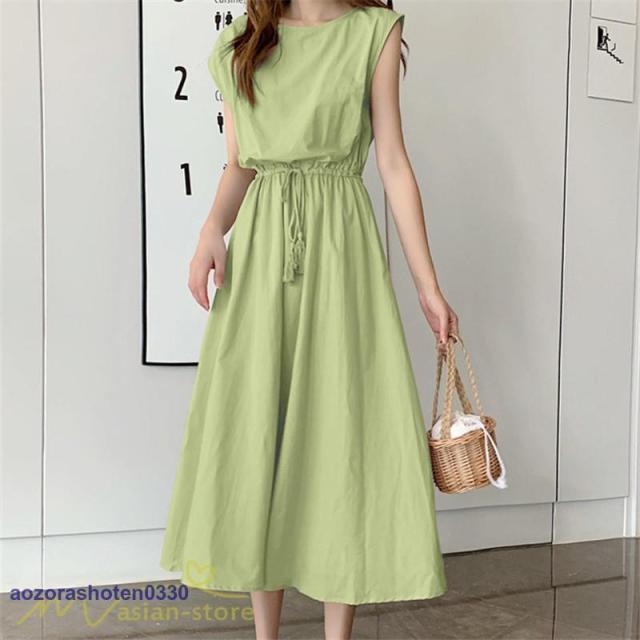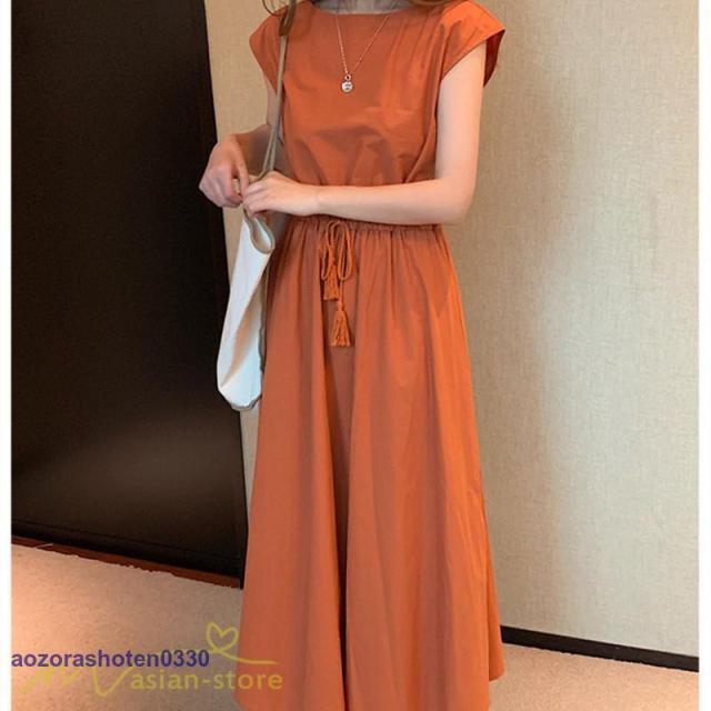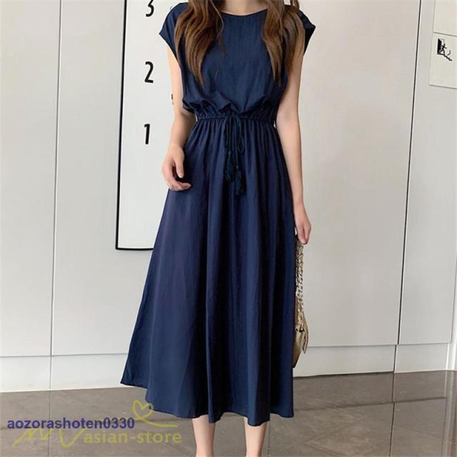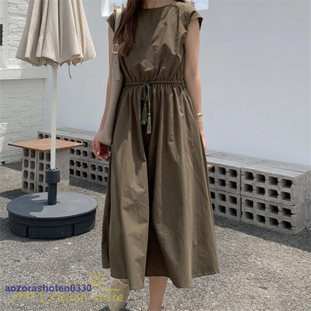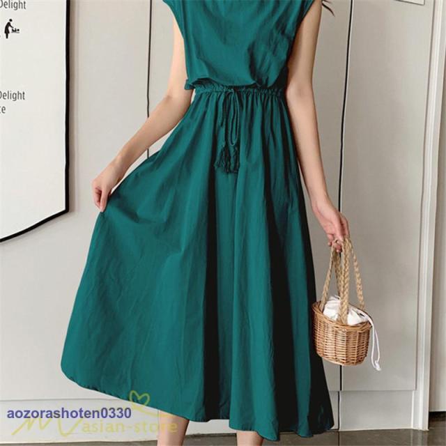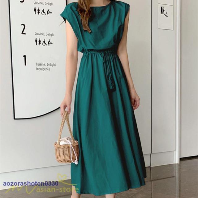 夏ワンピース 半袖 涼感 フレアワンピース 可愛い ロングワンピース ミモレ丈 大人 30代40代 オフィス お出かけ 無地 フェミニン スリム リネン 裏地付き