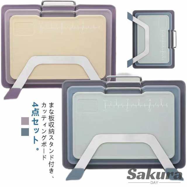 大中小3サイズ まな板 スタンド付き 目盛り付き カッティングボード 4点セット 抗菌 まな板 滑り止め まな板スタンド 両面用 食洗機対応 お手入れ簡単 まな板セット 持ち手付き まな板たて 軽量 省スペース 多機能 調理器具 キッチン用品