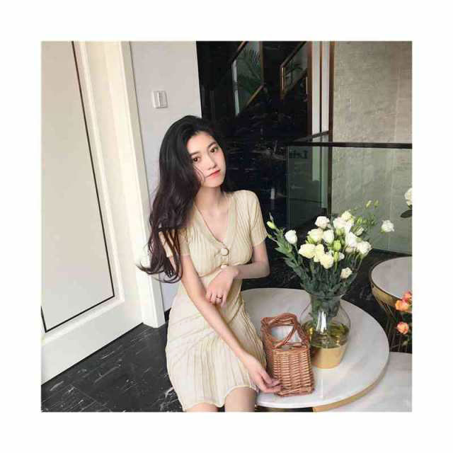 プリーツワンピース サマーニット 夏 春 半袖ニットワンピース レディース ミニワンピース 半袖ニットワンピース おしゃれ タイトワンピース きれいめ セクシー Vネック 通勤 ゆったり 旅行 体型カバー シンプル おしゃれ