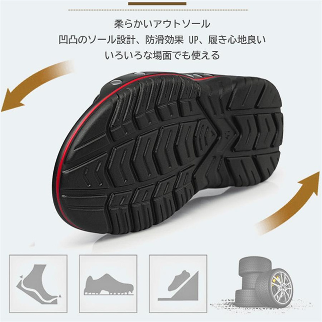 インソールに通気性デザイン、防滑効果もある、防滑PUアウトソール、摩擦力アップ