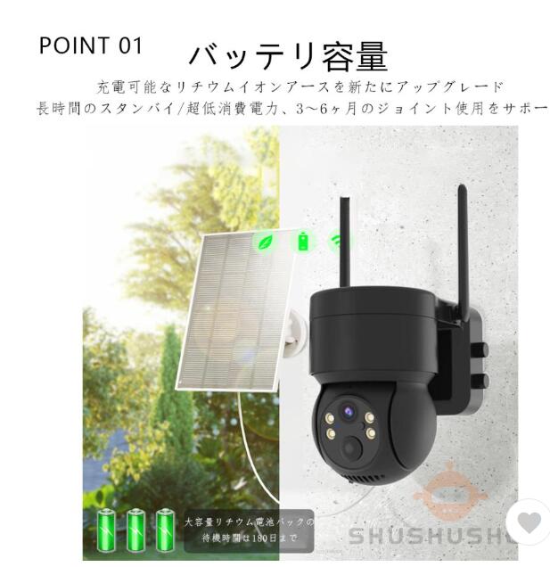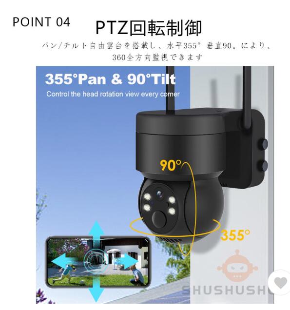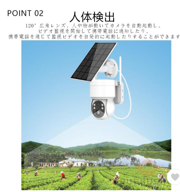 ソーラー充電式自動追跡防犯カメラ 屋外用 Wi-Fi対応 電源不要 監視カメラ AI人感検知