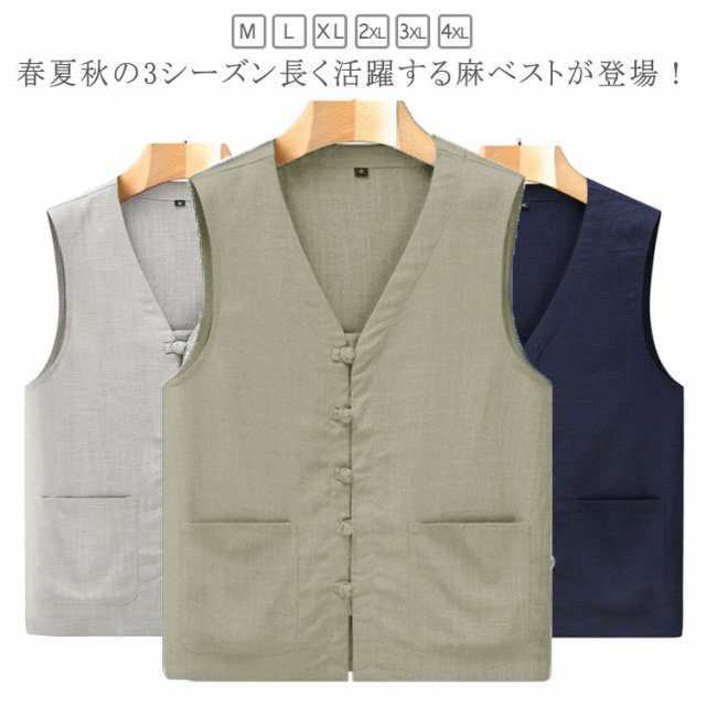 麻 ベスト メンズ ジレ サマーベスト 前開き リラックス 薄手 Vネック 紳士 おしゃれ 麻 春夏 リネンベスト メンズベスト カジュアル 清涼感 無地 シンプル ビジネス カジュアル 父の日 ギフト プレゼント 敬老の日 秋 通勤 実用的 大きいサイズ レイヤード