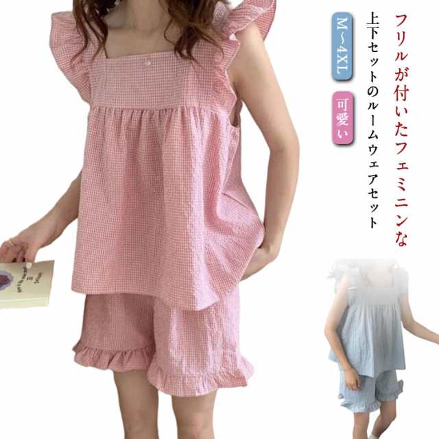 ルームウェア レディース パジャマ ノースリーブ 春夏 上下セット トップス 短パン ショートパンツ キャミソール セットアップ フリル 部屋着 可愛い 大きいサイズ おしゃれ 部屋着 寝巻き 大きいサイズ プレゼント ナイトウェア ギフト 送料無料