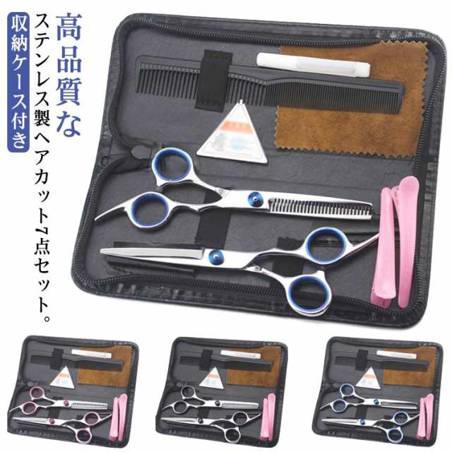 散髪 ハサミ ヘアカット 7点セット すきバサミ くし セルフカット セット 収納ケース付き セニングシザー スキバサミ 前髪 髪切り ウィッグはさみ 散髪 はさみ ヘアカット グッズ 道具 美容師 プロ用 家庭用 大人用 子供用 初心者用 ペット用 ステンレス製 【送料無料】