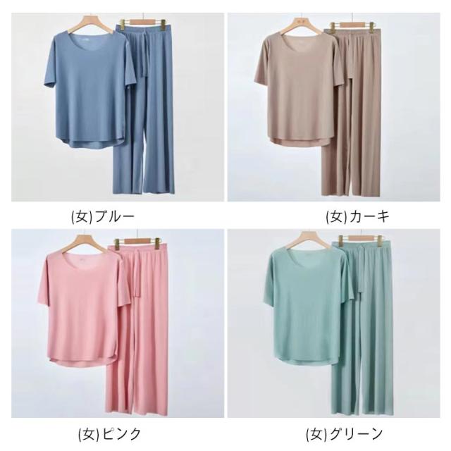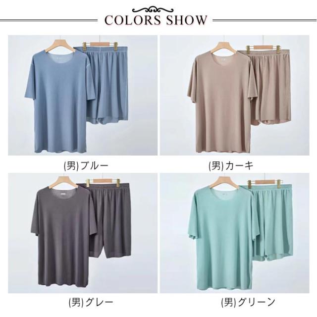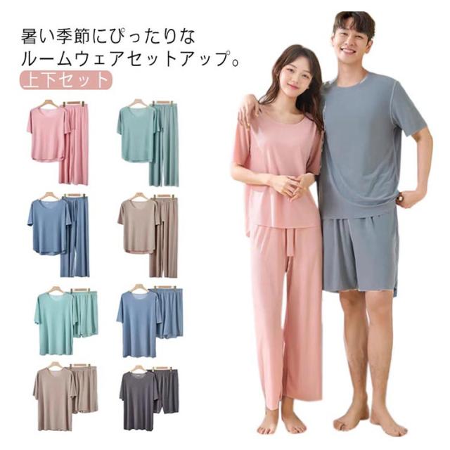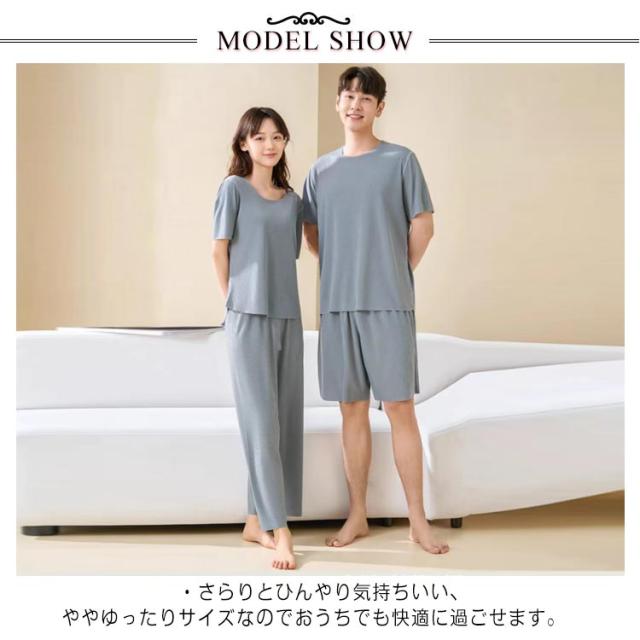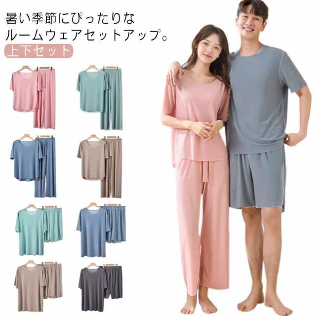 ルームウエア セットアップ 涼しい 上下セット メンズ レディース 接触冷感 Tシャツ 半袖 長ズボン ショートパンツ 楽ちん パジャマ ワンマイルウェア ウエストゴム ナイトウエア リラックスウェア 寝間着