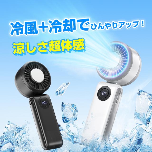 ハンディファン ポータブル扇風機 冷却プレート付き 小型 軽量 5段階風量 無段階変速 折りたたみ式 【夏新登場】【2025新開発】 大容量 5000mAh 静音 パワフル 液晶デジタル表示 Type-C急速充電 暑さ対策 首掛け 持ち運び便利 90日安心保証付き 【PL保険加入済み製品・安心】