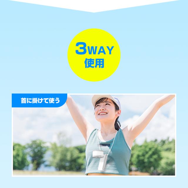 軽量でコンパクトなボディで、バッグに入れても邪魔にならず、持ち運びにとても便利です。さらに、ストラップ付き、首から掛けるだけでハンズフリーで涼しさをキープできます。両手を塞がず、アウトドアや作業中に手軽に使用でき、非常に便利です。