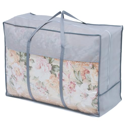 アストロ 羽毛布団収納袋 グレー シングル ダブル兼用 通気性の良い不織布製 布団収納 布団袋 収納バッグ 収納ケース 保管袋 ホコリ除け 持ち手付き 透明窓付き 圧縮袋 コンパクト 167-04