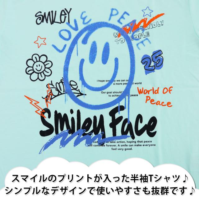 スマイルのプリントが入った半袖Tシャツ