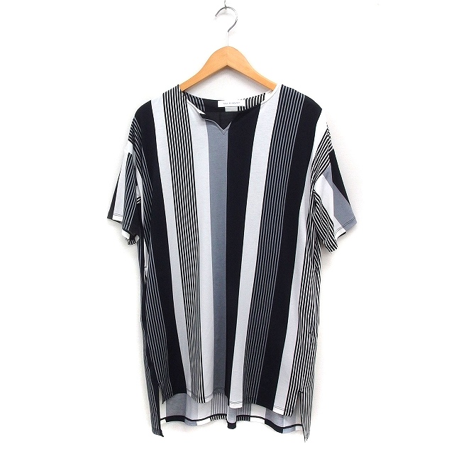 【中古】アズールバイマウジー AZUL by moussy ランダムストライプ チュニック 半袖 キーネック S ブラック 黒 /FT