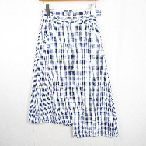 【中古】メリージェニー merry jenny タイト スカート ロング丈 アシンメトリー ベルト付き 綿 F ブルー