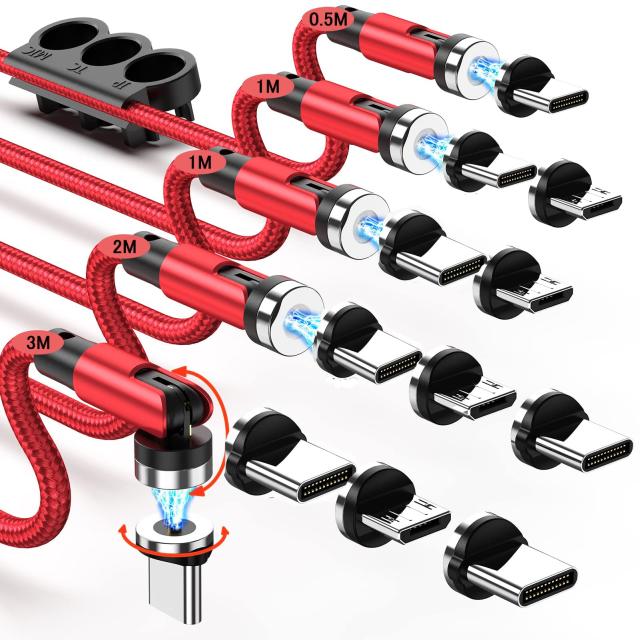 マグネット 充電ケーブル 【5本セット/0.5+1Mx2+2M+3M&12コネクタ】 LEDライト内蔵 USBケーブル 3in1 充電器 マグネット 540°回転可能