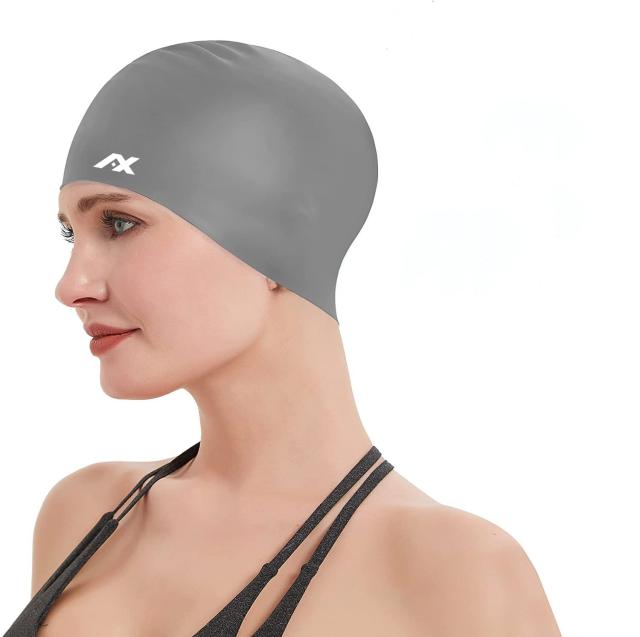 AX スイミングキャップ 水泳キャップ スイムキャップ シリコン 大きめ 水泳帽子 長髪 ゆったりサイズ レディース メンズ (グレー)
