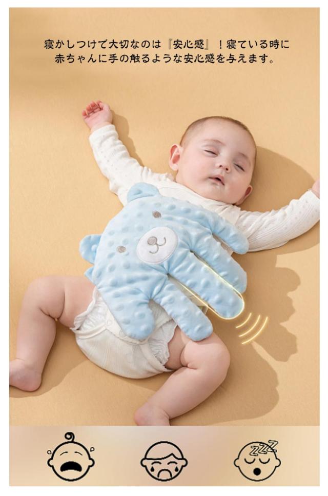電動式 赤ちゃん 寝かしつけ用 指が動き 夜泣き防止 快眠 安眠 ぬいぐるみ クッション 加熱クッション 手ひら クマ 可愛い お母さんの手触りを真似 安心感ぬいぐるみ 吐き戻し防止 驚いた防止 添い寝 排気促進 おねんね抱っこ やわらか手触り 新生児 幼児用 出産祝い ギフト