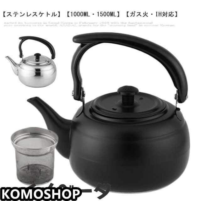 ケトル やかん 大容量 ガス火?IH熱源対応 広口 ティーポット お手入れ簡単 軽量 持ち運び便利 茶こし付き 多機能 アウトドア キャンプ ピクニック キッチン用 レストラン 家庭用 業務用 プレゼント