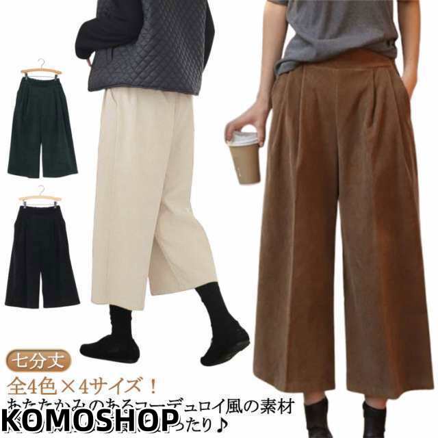 ウェストゴム コーデュロイ 七分丈 コーデュロイ 7分丈 ガウチョパンツ きれいめ 秋冬 ワイド 下着 ポケット付き コーデュロイパンツ ロングパンツ シンプル クロップトパンツ パンツ スカーチョ オーバーサイズ あったか 大人 無地 体型カバー