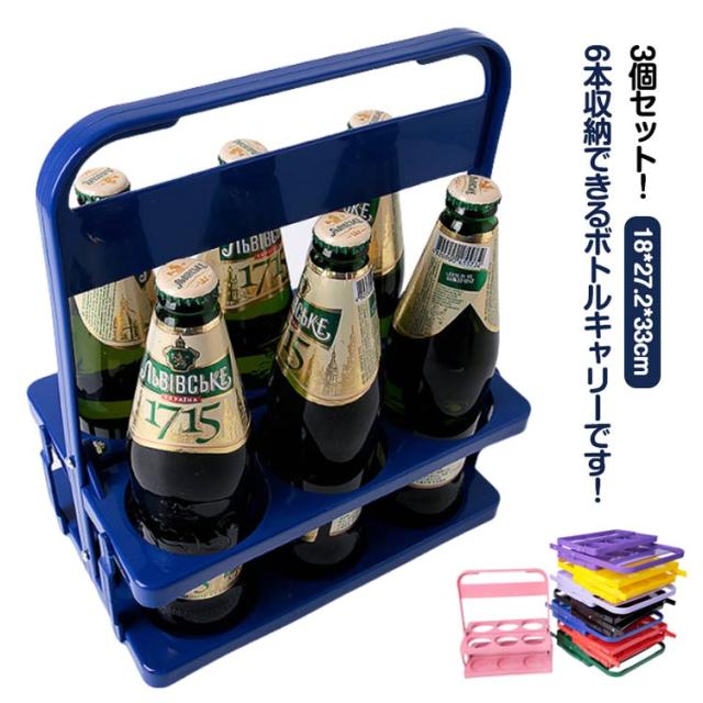 瓶 折りたたみ 3個セット 手提げ ビール瓶 6本用 ワインボトル ボトルケージ ボトルキャリアー 3個セット コンパクト 収納便利 パーティー アウトドア バー用 プレゼント