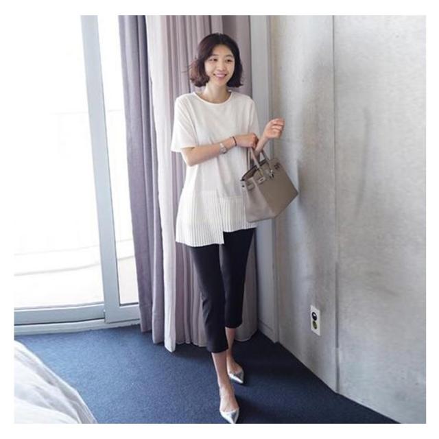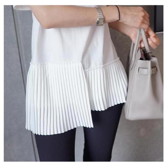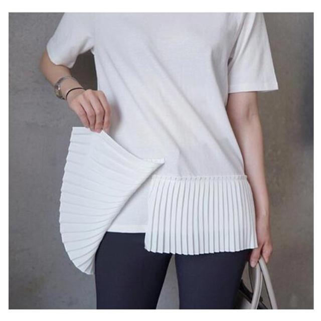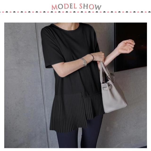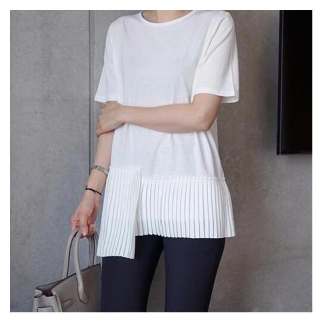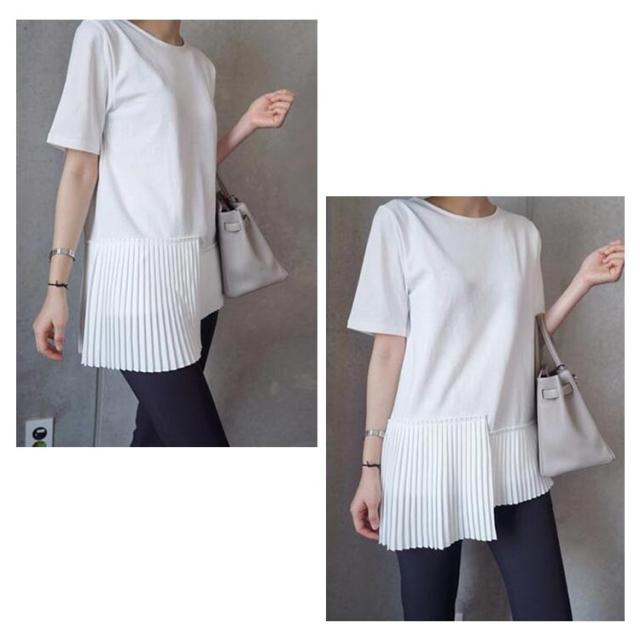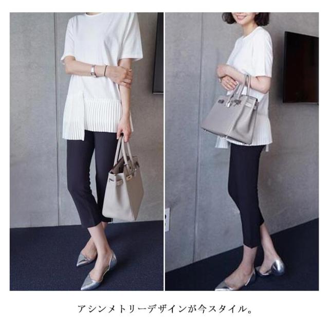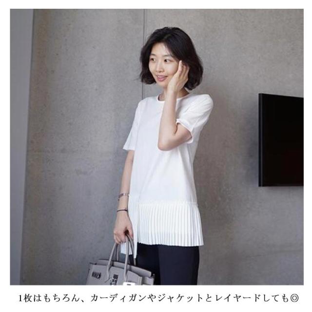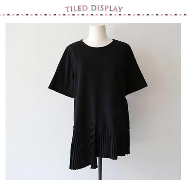 半袖 おしゃれ プリーツ 送料無料 Tシャツ レディース 半袖Tシャツ 可愛い 切り替え 個性的 クルーネック アシンメトリー トップス カットソー 半袖