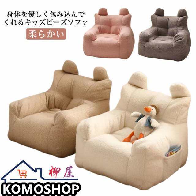 子供ソファ ビーズソファー 座椅子 可愛い耳付き キッズソファ ビーズクッション 一人掛け 椅子 チェア 子供用 ミニソファ 背当て ふわふ