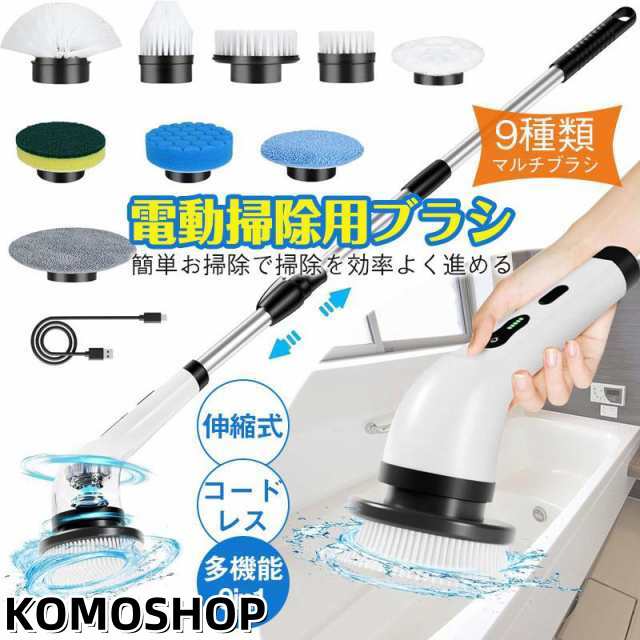 電動ブラシ 掃除 車掃除 電動 9種類 付替えブラシ 充電式 お風呂 バス ポリッシャー ハンディ 柄付ブラシ マルチブラシ 掃除ブラシ 長さ速度調整