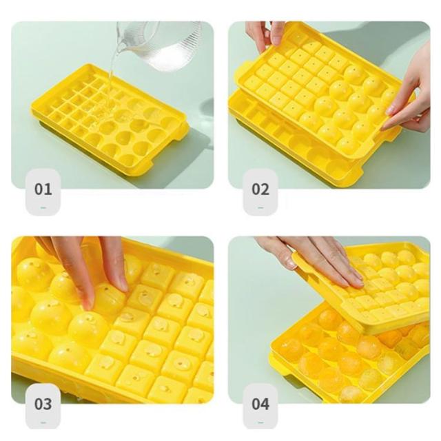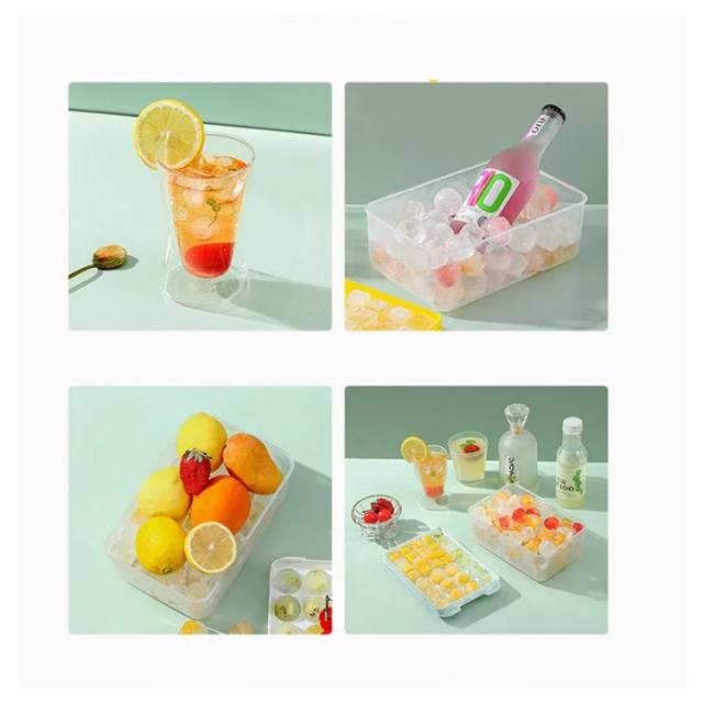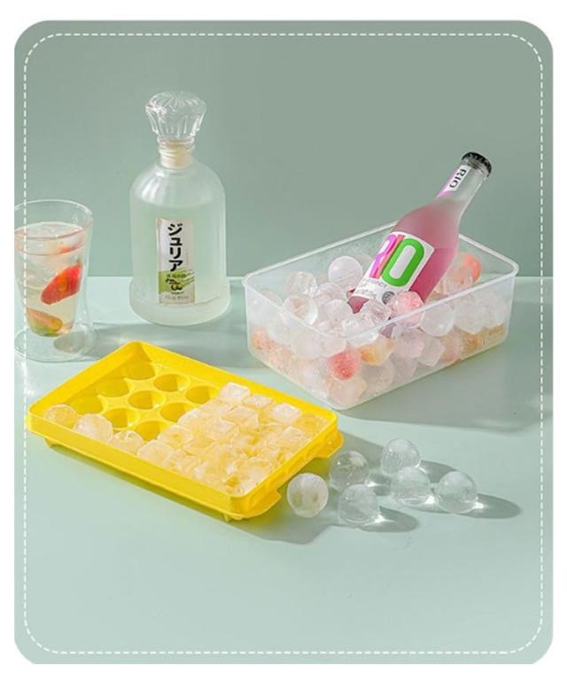 | 32個の氷を1回で作ることが出来るアイスボールメーカー 密閉状態のアイスボックスは防塵?防臭仕様で、フタを開けやすく、低温に強く、お手入れも簡単なユニークなデザインです。 密封性の高い蓋が付いており、匂い移りを防ぐできます。また冷凍庫に重ねて収納できるので、使わないときも超省スペースです。 水で丸洗いできるので、衛生的にご利用頂けるアイスボールメーカーです ウィスキー やカクテル等のお酒はもちろん、アイスコーヒーやジュース、様々な料理にも大活躍します。冬でも夏でも、いつでも大アイストレイを使用できます。 | |