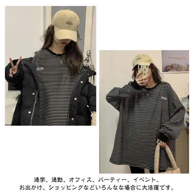 | かわいいゆるり感を溢れるtシャツで、カジュアルなデザインが女子感満々。 着まわしやすいゆるっとボーダー長袖Tシャツ。 シンプルなアイテムだからこそ、ディテールにこだわりました。 通学、通勤、オフィス、パーティー、イベント、お出かけ、ショッピングなどいろんなな場合に大活躍です。 | |