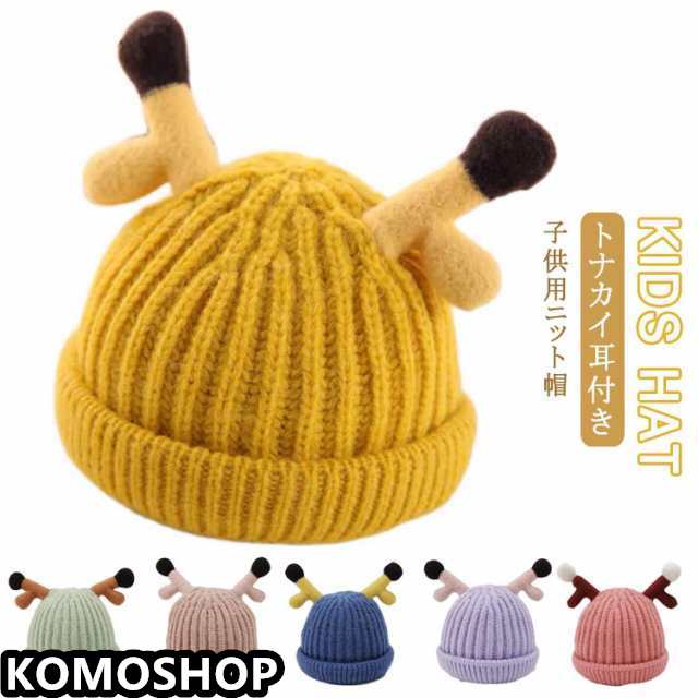 トナカイ耳付き ニット 帽子 子供 シカ耳付き ニット帽子 ニット帽 キッズ 帽子 ベビー 赤ちゃん ニットキャップ キッズ帽子 キャップ 女の子 男の子 帽子 ニット帽 帽子 防寒 冬物 プレゼント クリスマス 誕生日 送料無料
