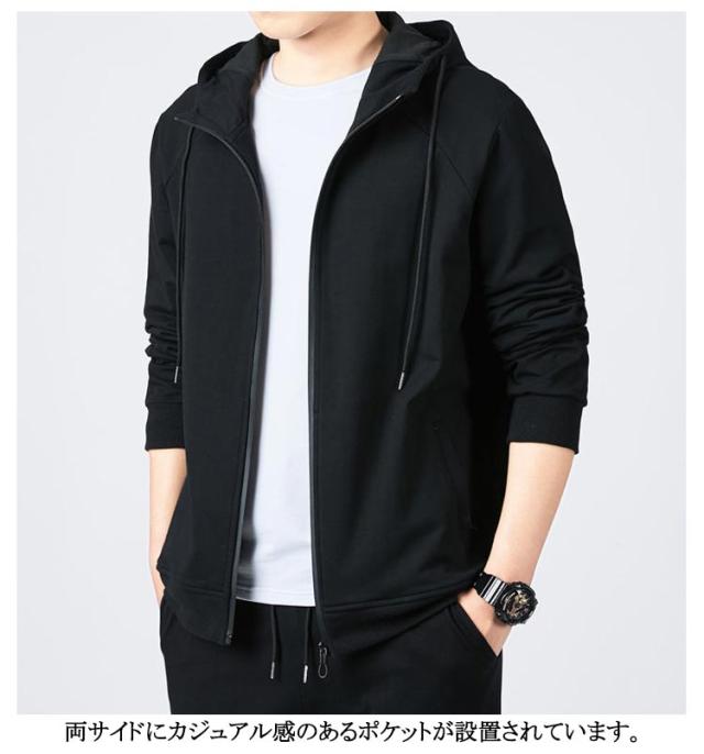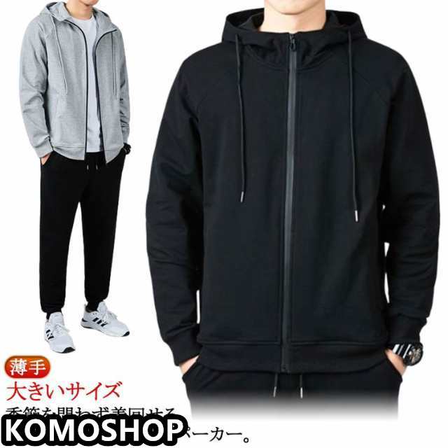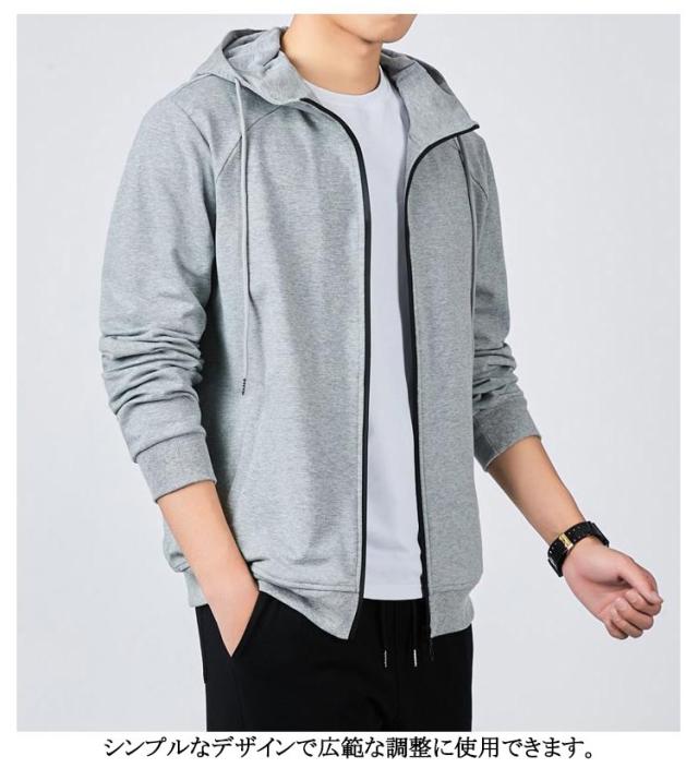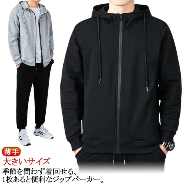 パーカー おしゃれ 前開き 春 スウェットパーカー 薄手 ジップアップパーカー 綿 春秋 フード付き 羽織り パーカー 大きいサイズ 無地 トップス ジップパーカー ルームウェア カジュアル ゆったり メンズ シンプル ウォーキング スポーツ グレー ブラック 送料無料