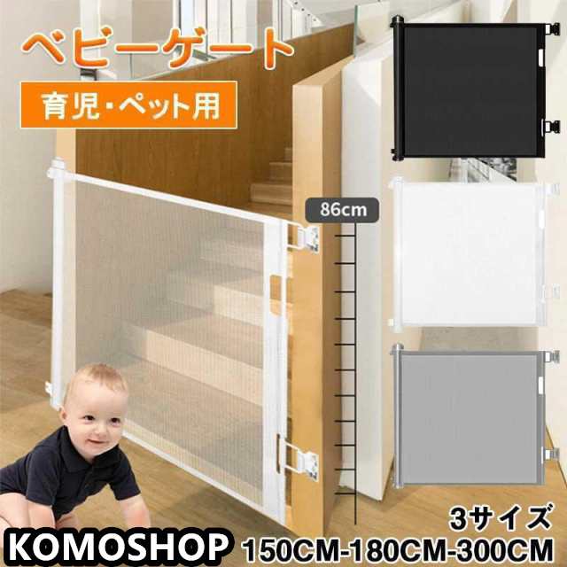 ベビーゲート 階段上 階段下 ロール式 ロック可能 高さ86cm 幅150/180/300cm 突っ張り ペットフェンス セーフティーゲート 育児 ペットゲート バリアフリー