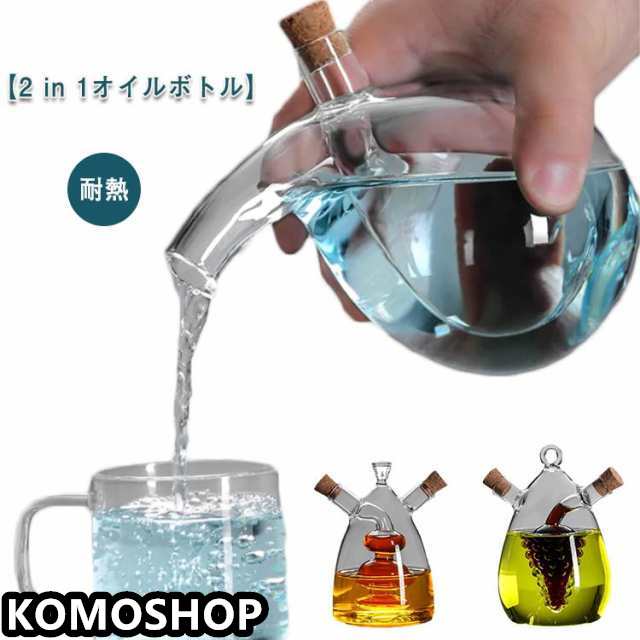 オイルボトル 両用 2in1 調味料入れ オイル差し 耐熱 透明 ガラス おしゃれ 醤油ボトル 酢ボトル 油差し 防塵 油容器 調味料