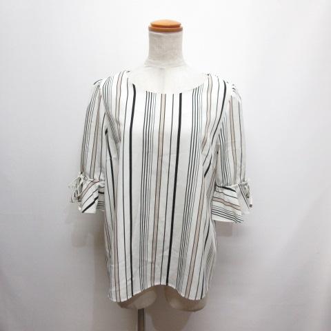 【中古】テチチ Te chichi ストライプ柄 七分袖 ブラウス カットソー M アイボリー レディース