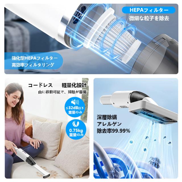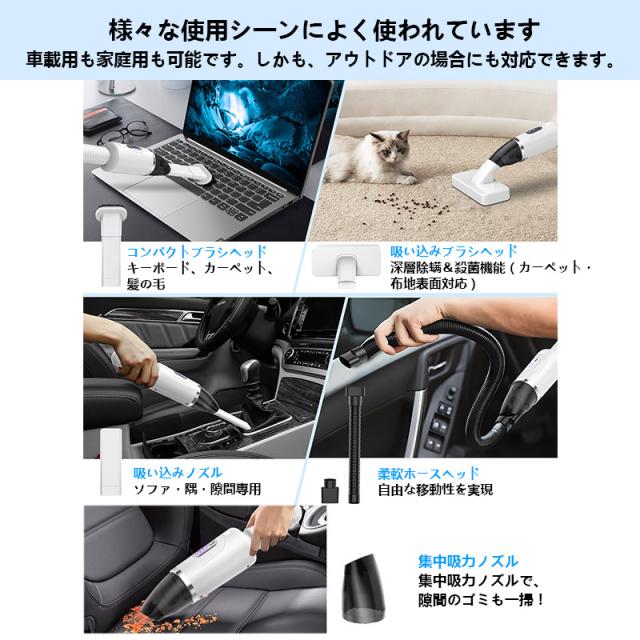 即納 ハンディクリーナー 自動車用掃除機 コードレスクリーナー 車用掃除機 ダニ駆除 3段階調整可 静音 強力吸引 家庭用 車載掃除機 一台5役 髪の毛