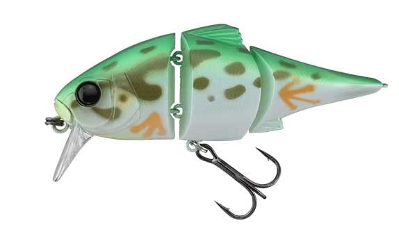 操る楽しさを存分に味わうジョイントベイト サーチベイトとして ジョイント部が小さくカチカチと音を立てながらアクションしバスを誘います。 扁平のスイングテールがボディのロールアクションを抑えることで、クランクベイトとは一味違う波動とアクションが特徴です。 ピンスポット攻略 ストラクチャーの際などの“食わせどころ”では、細かなトゥイッチでピンスポットをじっくり誘うのも効果的です。また、リトリーブを止めるとクネクネとボディを動かしながら浮上します。 デッドスティッキング 抜群のアクションレスポンスで、水に浮かべておくだけで自発的にアクションします。エビや虫などをメインベイトとするケースで特に効果を発揮し、シェイクを加えるのもおすすめです。