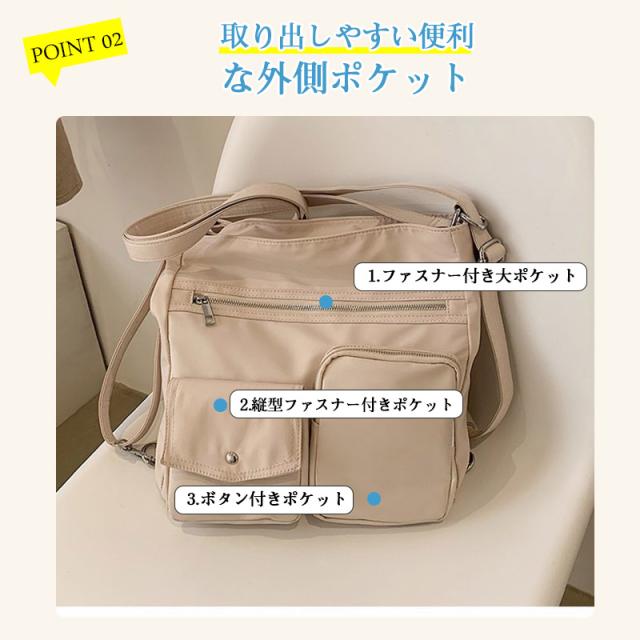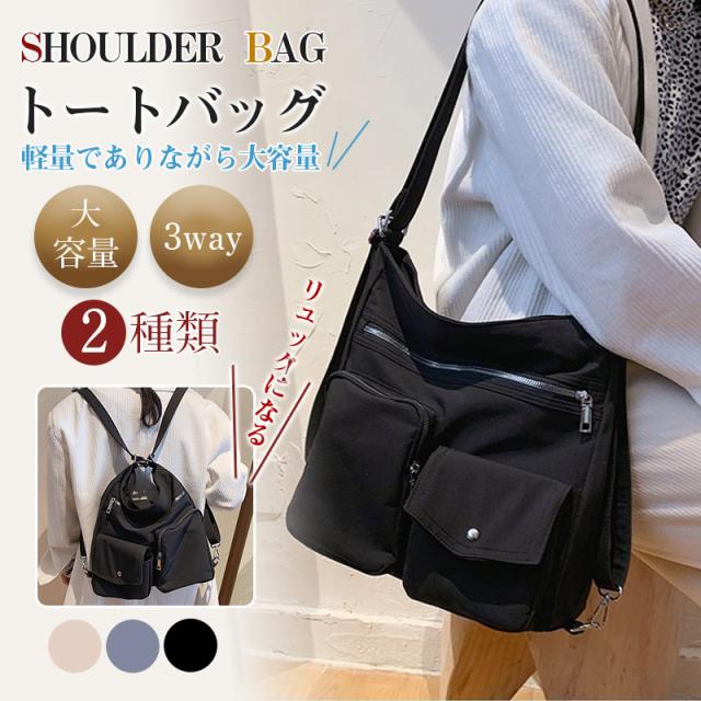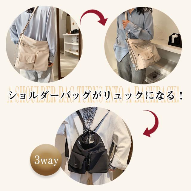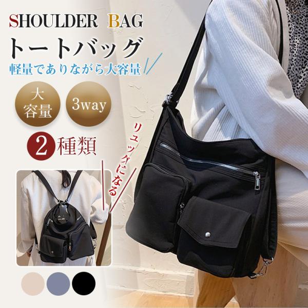 ショルダーバッグ リュック 3way 大きめ レディース ファスナー 斜めがけ ナイロンバッグ 軽量 トートバッグ a4 通勤 大容量 カンバス