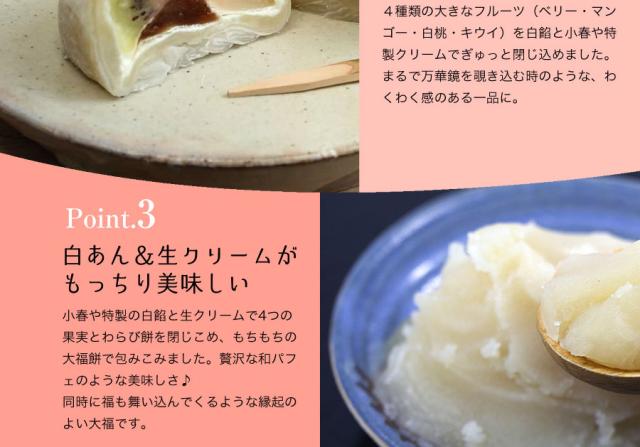 フルーツパフェ大福 万華鏡 小春や 北新地 6個 フルーツ大福 クリーム大福 白餡 わらび餅 ギフト 個包装