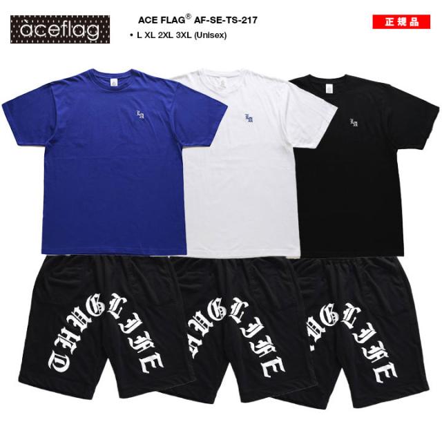 ACE FLAG 上下セット 半袖 ブランド Tシャツ ハーフパンツ メンズ 春夏用 全3色 大きいサイズ エースフラッグ セットアップ スウェット ショートパンツ エルエー 刺繍 ビッグシルエット b系 ヒップホップ ファッション ダンス ストリート系 ハイ 2025 新作 AF-SE-TS-217