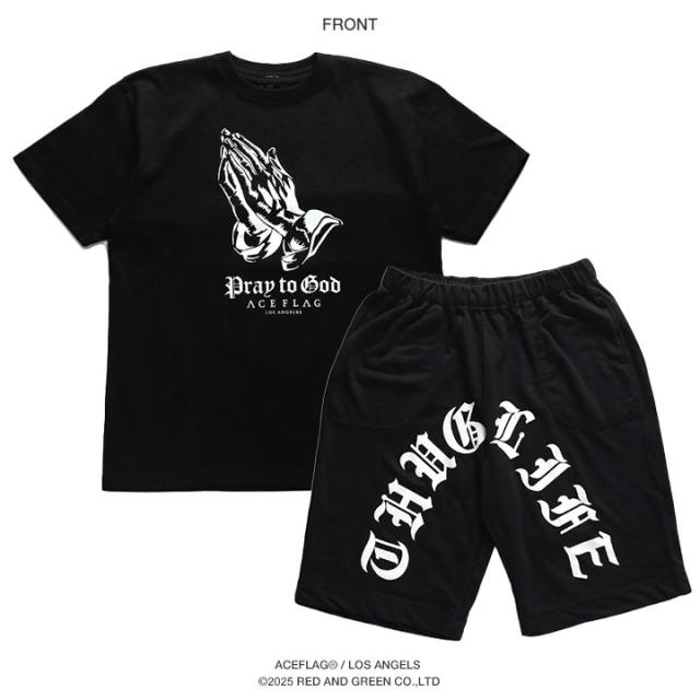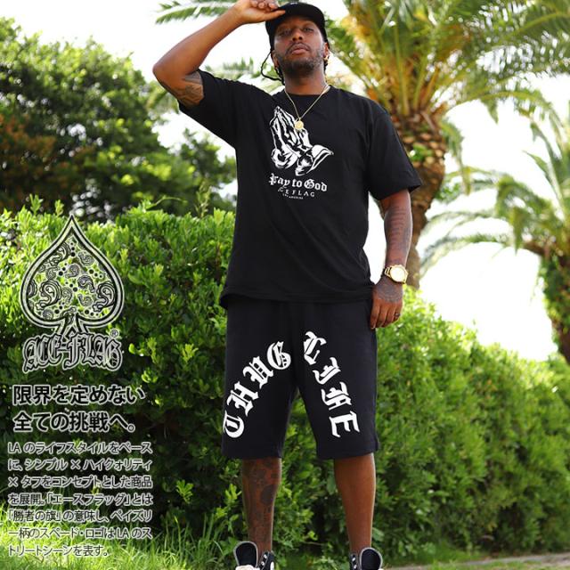【43%OFF】ACE FLAG 上下セット 半袖 ブランド Tシャツ ハーフパンツ メンズ 春夏用 黒 大きいサイズ エースフラッグ セットアップ ショートパンツ Praying Hands 祈り手 レイングハンズ ビッグシルエット b系 ヒップホップ ファッション ストリート系 ハイ AF-SE-TS-212