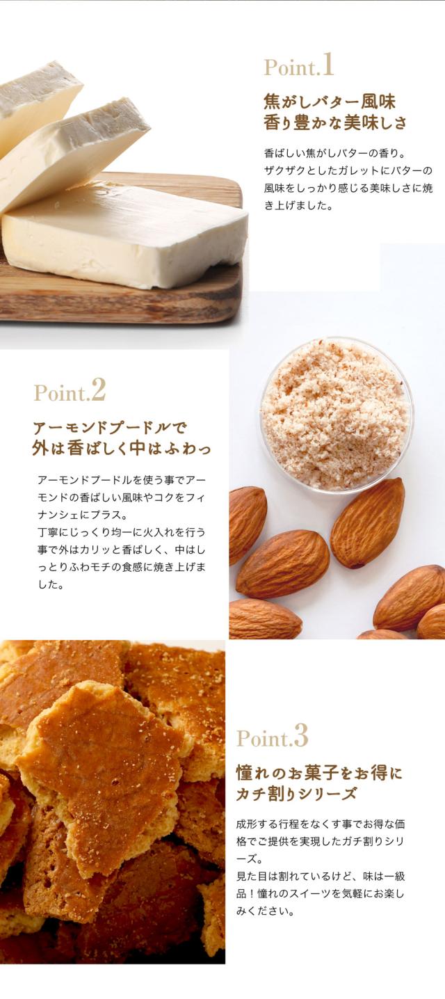 ざくっ!ほろっっとした食感に、小麦粉の豊かな風味と卵のやさしい味わい。ふんわりとアーモンドの香ばしさが広がる本格派、成型の手間を抑えた大ボリュームかち割りシリーズです。