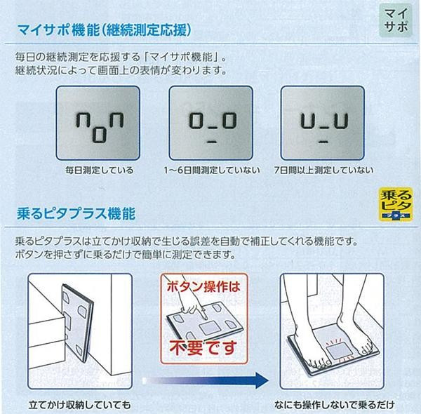 | 仕様 | 電池寿命:約1年(1日5回はかった場合) マイサポ機能 乗るピタプラス機能 体重急激増減お知らせ機能 |
