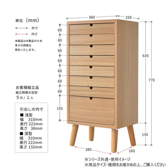 | 素材・材質 | 本体・引出:中質繊維板(タモの突板貼り) 脚:パインの天然木 |