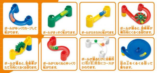 商品詳細:いろいろなパーツを使って、ボールが転がるコースを考えるおもちゃです。最初は少ない部品で小さなコース、慣れてきたらだんだん複雑なコースを作りましょう。組みたてて、転がしてみて、組みかえて…試行錯誤のくり返しが創造力と考える力を養います。 生産国:中国 素材・材質:ABS・PP 重量:全体重量:約1280g 仕様:対象年齢:3歳以上STマークつき セット内容:パーツ:17種類57個