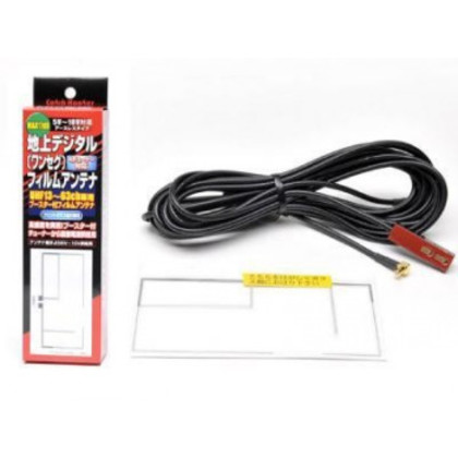 | フィルムだけだから目立たない!ガラス内側に装着するのでそのままで洗車OK!アンテナケーブルの給電部に小型高感度ブースターを内蔵、DC5V〜10V用。電源コードはアンテナケーブルを使用しますので電源配線は不要です。 【重要※お確かめください】 チューナーのアンテナインから5Vボルトから10ボルトの電圧が出ていないチューナーは使用できません。電圧が出ているかどうか、確認してからお買い求め下さい。 【取付手順】 1.車の電源を切り、バッテリーのマイナス側のケーブルをはずして下さい。(ショート事故防止) 2.アンテナ取付、車種により実車に合わせて位置を決定して下さい。 (A)貼り付けるガラス面の汚れを完全に拭き取って下さい。 (B)エレメントアンテナの剥離紙をはがしガラス面に貼り固定してから、保護シールをはがし全体を貼り付けて下さい。 (C)用意した布を貼り付けたフィルムにしっかりと押し当てアンテナをガラス面に密着させて貼り付けて下さい。 (D)透明フィルムをゆっくりはがして下さい。 (E)エレメントアンテナを布で押さえてガラス面に密着させて下さい。 (F)コネクターの保護紙をはがし、接続部へ取り付けて下さい。 (G)バッテリーのマイナス側のケーブルを取り付けて下さい。 【注意事項】 ●可動するガラス面には取付しないで下さい。一部車両の熱線吸収ガラスや、メタリックフィルムなどの特殊加工をほどこしたガラスへの取付は性能を十分に発揮できない場合があります。 ●取付は専門技術が必要ですので、出来るだけ取付技術のあるお店にご依頼下さい。 ●万一、煙がでる、変なにおいがする、水がかかったなどの異常が起こりましたら、直ちに使用を中止し、必ず販売店にご相談下さい。そのままご使用になりますと事故・火災・感電の原因となります。 ※地域によっては満足な感度が得られない場合が有ります。 ※仕様及び外観は予告なしに変更する場合があります。 ※運転及び、乗降時に差し支える配線は大変危険ですのでおやめください。 |