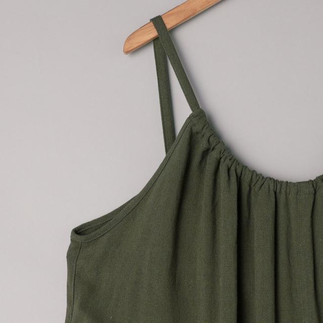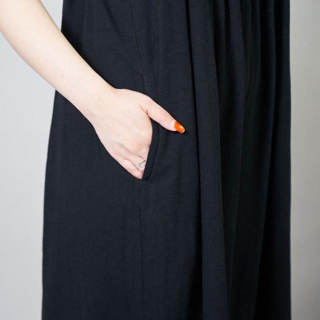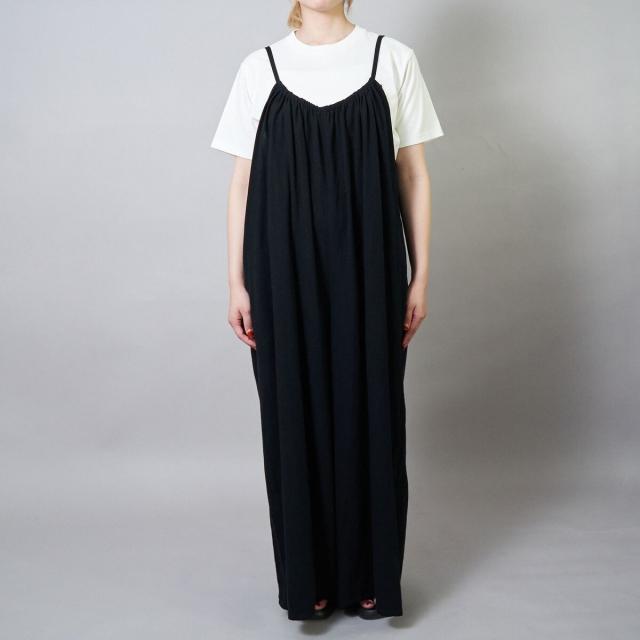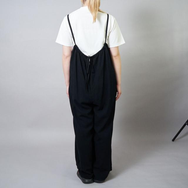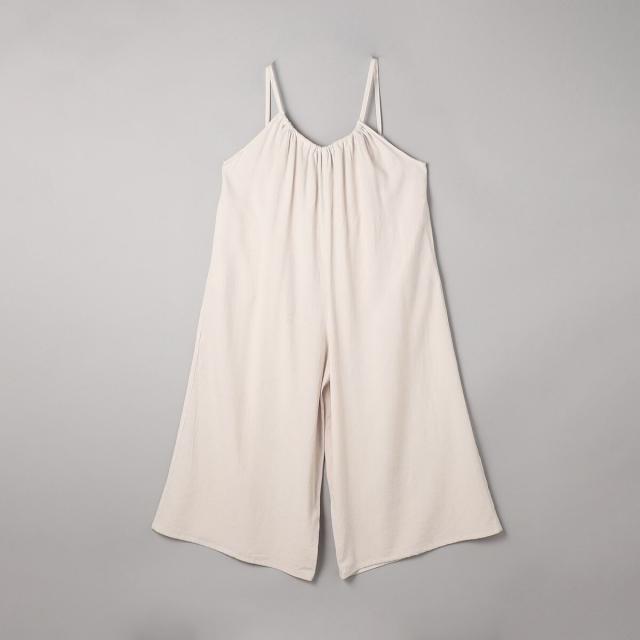 さらりとした肌ざわりの強撚サンド素材を使用した、リラックスムード漂うサロペット。