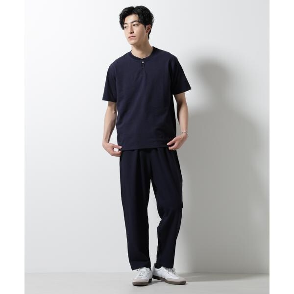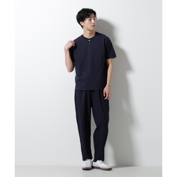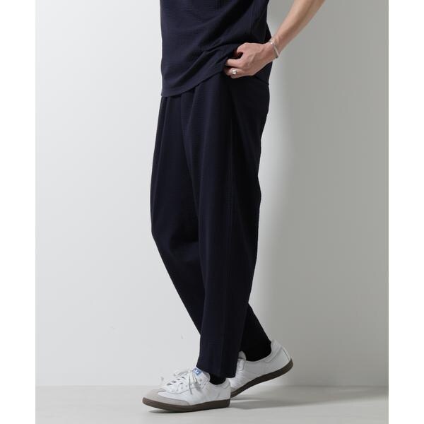 凸凹のサッカー素材が汗をかいても生地が肌につきにくく、快適な着用を提供するワイドテーパードパンツ。カジュアルなイージー仕様ながらも加工や生地感で、きちんと見えも叶えるアイテムです。
