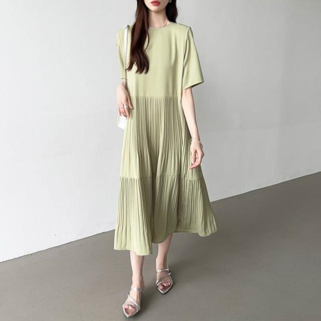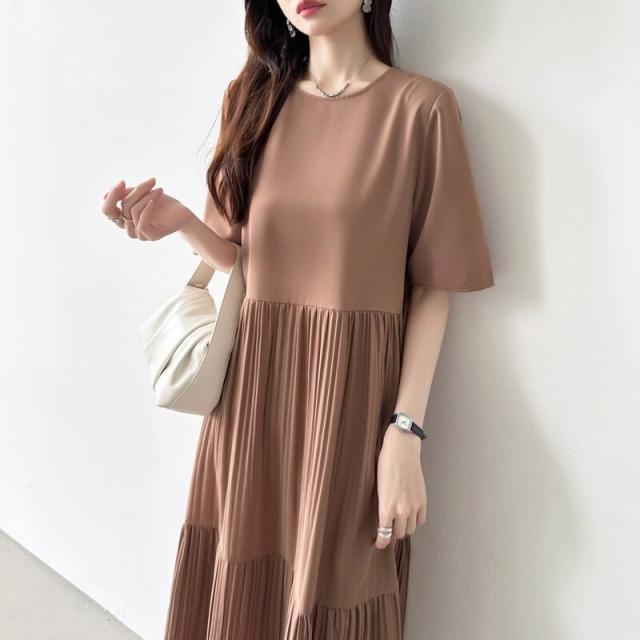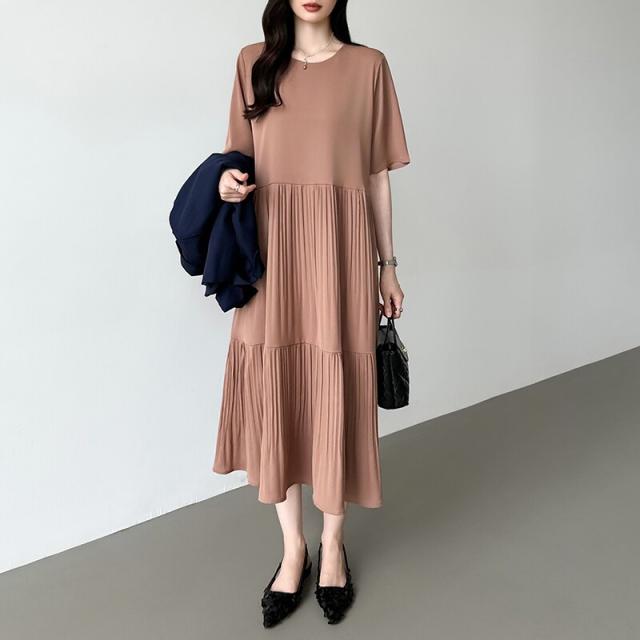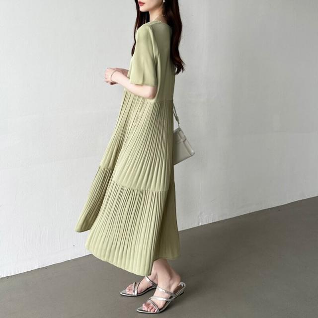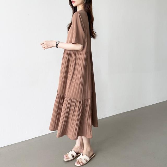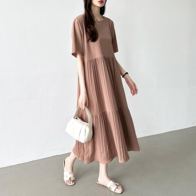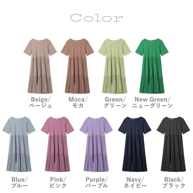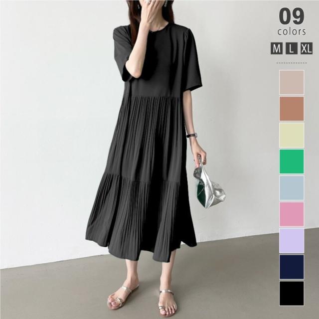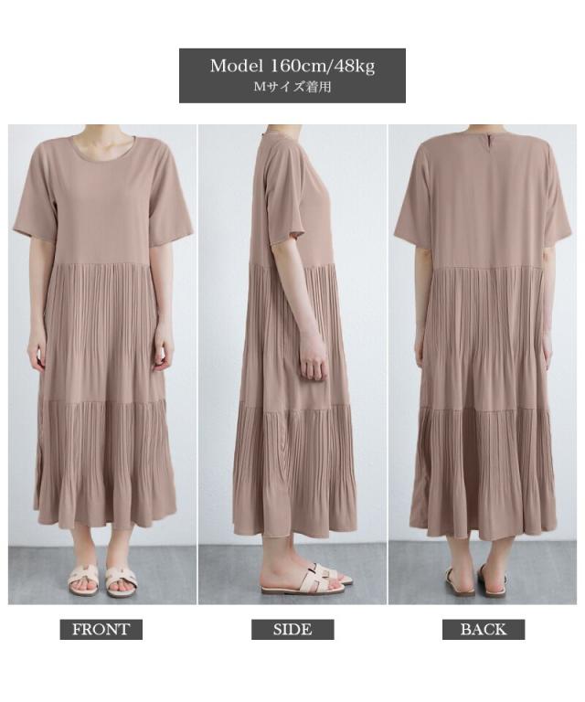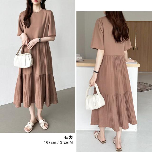 COCOMOMO(COCOMOMO)/フレアワンピース ロング丈 半袖 ギャザーワンピース 夏 レディース クルーネック ゆったり